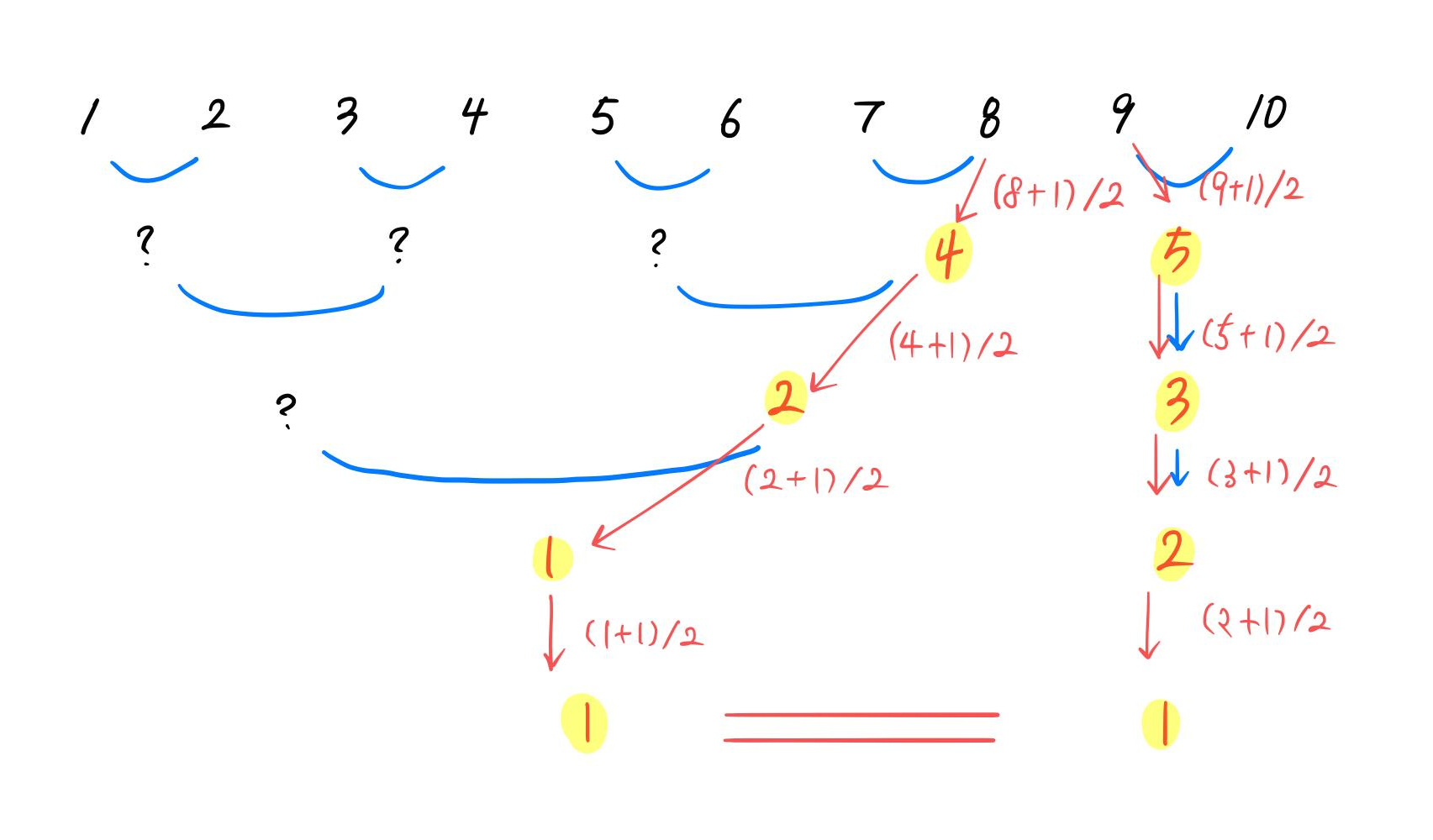 이는, 다음 인덱스 = (현재 인덱스 + 1) / 2와 같다. (이는 자명한 사실이므로 굳이 설명하지 않겠음)