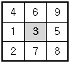 또한 위쪽 가운데 위치한 3x3 정사각형의 경우에는 3을 제외한 나머지 숫자들이 이미 쓰여있으므로 가운데 빈 칸에는 3이 들어가야 한다.