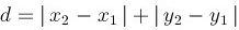 D(T1,T2) = |x1-x2| + |y1-y2|