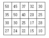 첫째 줄에는 지도의 세로의 크기 M과 가로의 크기 N이 빈칸을 사이에 두고 주어진다. 이어 다음 M개 줄에 걸쳐 한 줄에 N개씩 위에서부터 차례로 각 지점의 높이가 빈 칸을 사이에 두고 주어진다. M과 N은 각각 500이하의 자연수이고, 각 지점의 높이는 10000이하의 자연수이다.